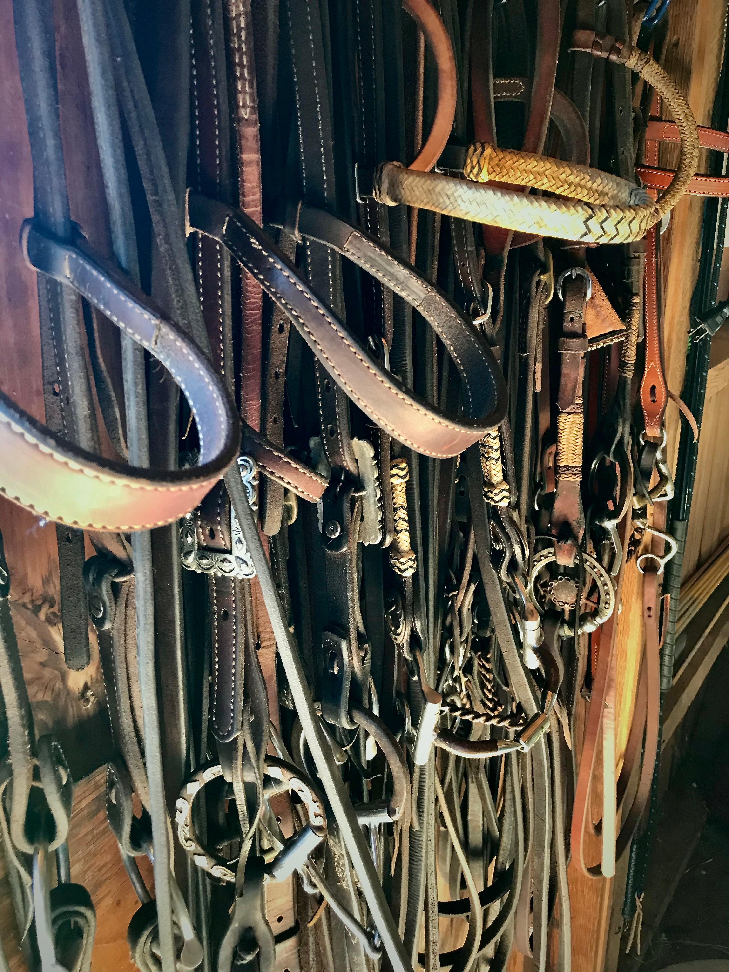 The leather I use for the handles is from bridle leather. Bridle leather is a thicker leather that is treated throughout with oils and waxes which help the leather to stand up to rough outdoor use and horse sweat. This extensive treatment is what gives the leather strength and scratch resistance while allowing it to be soft and supple. The quality and characteristic of this leather is invaluable for the communication between the equestrians hands and the horses mouth.